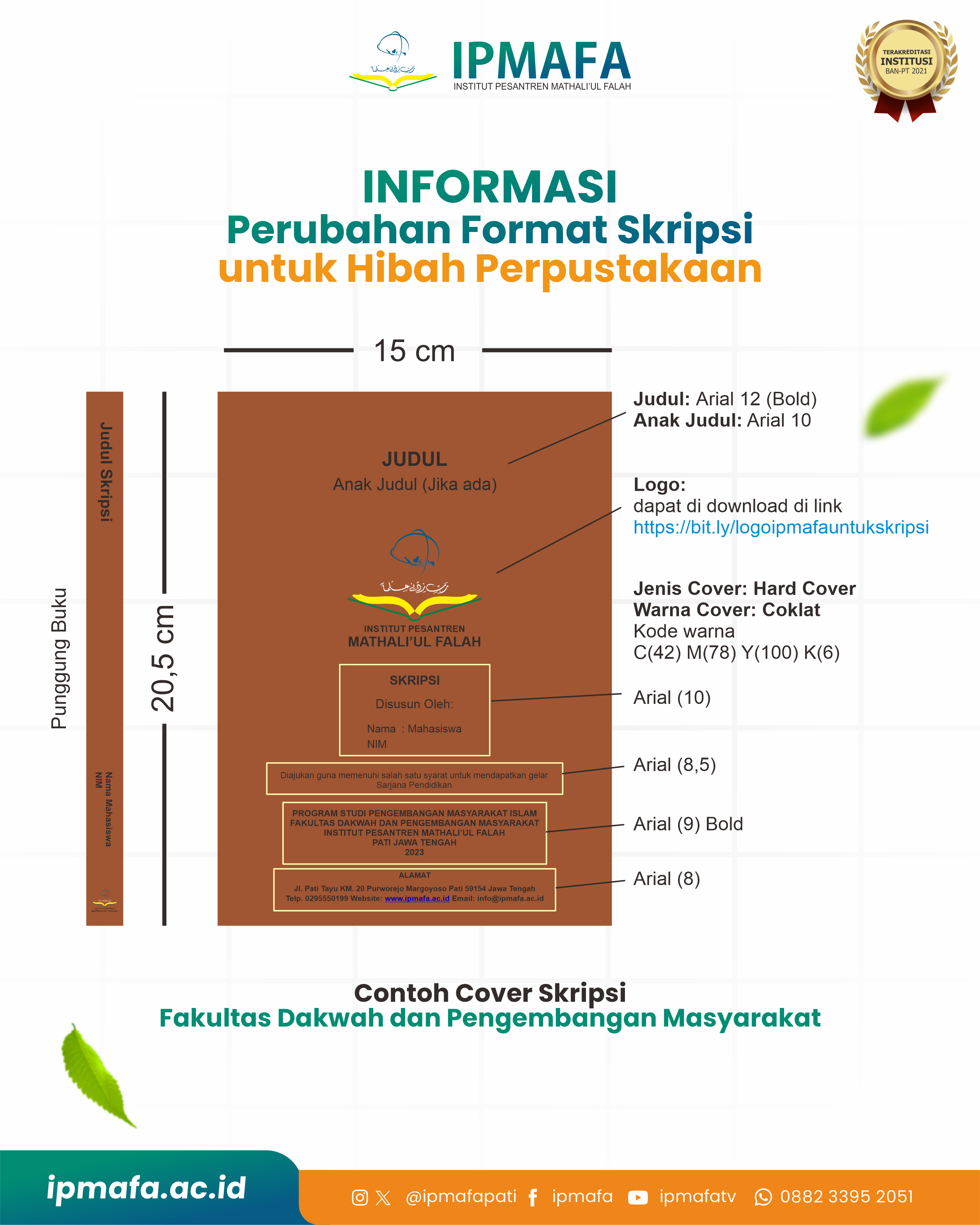 Ketentuan format skripsi untuk hibah perpustakaan di Ipmafa mengalami perubahan mulai tahun 2024. Agar tidak salah saat menyerahkan ke petugas perpustakaan, hendaknya mahasiswa memperhatikan dan mengikuti ketentuan sesuai petunjuk berikut: